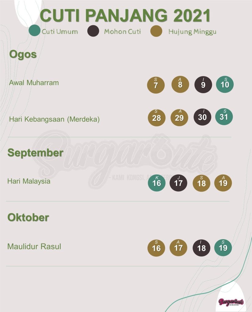 Hari Raya Haji: 17 Julai hingga 20 Julai (Cuti Panjang Sabtu hingga Selasa) *