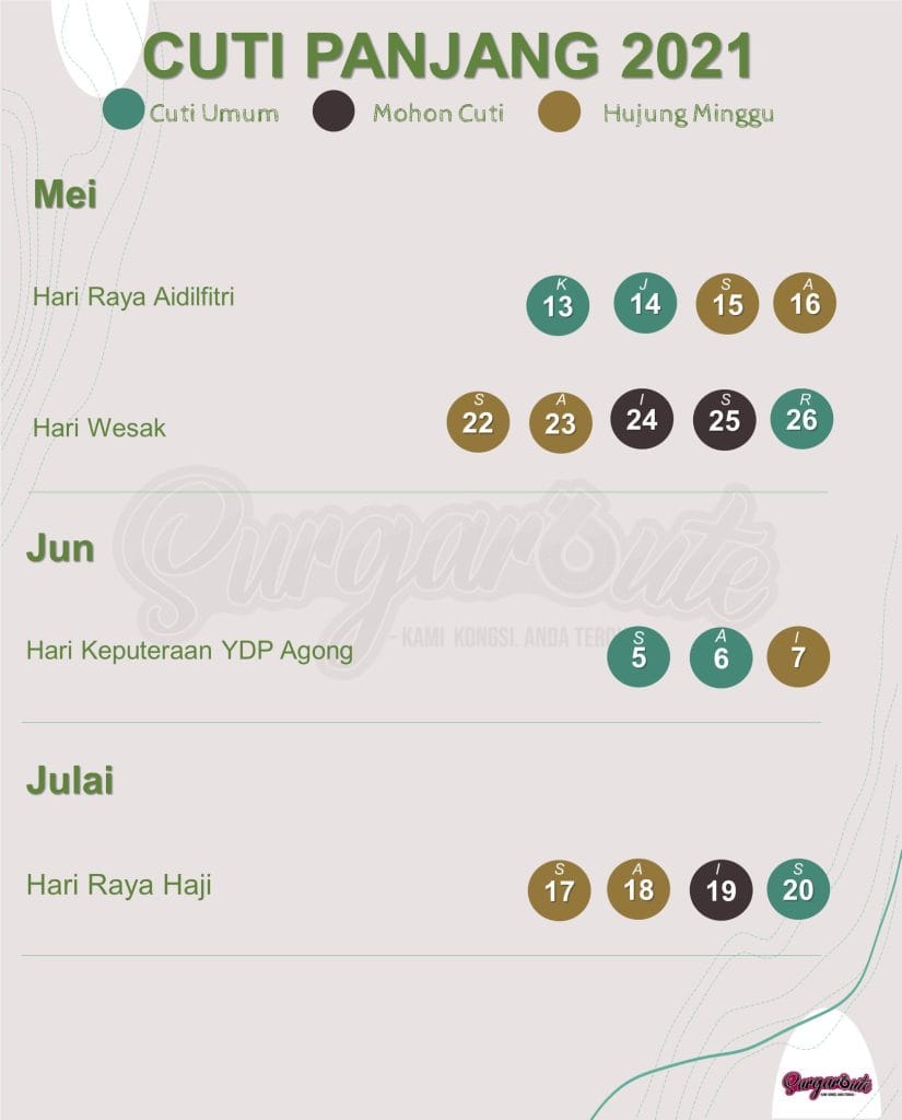 - Ambil cuti pada hari Isnin, 31 Mei.