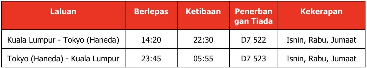 Jadual Penerbangan antara Kuala Lumpur dan Tokyo (Haneda)